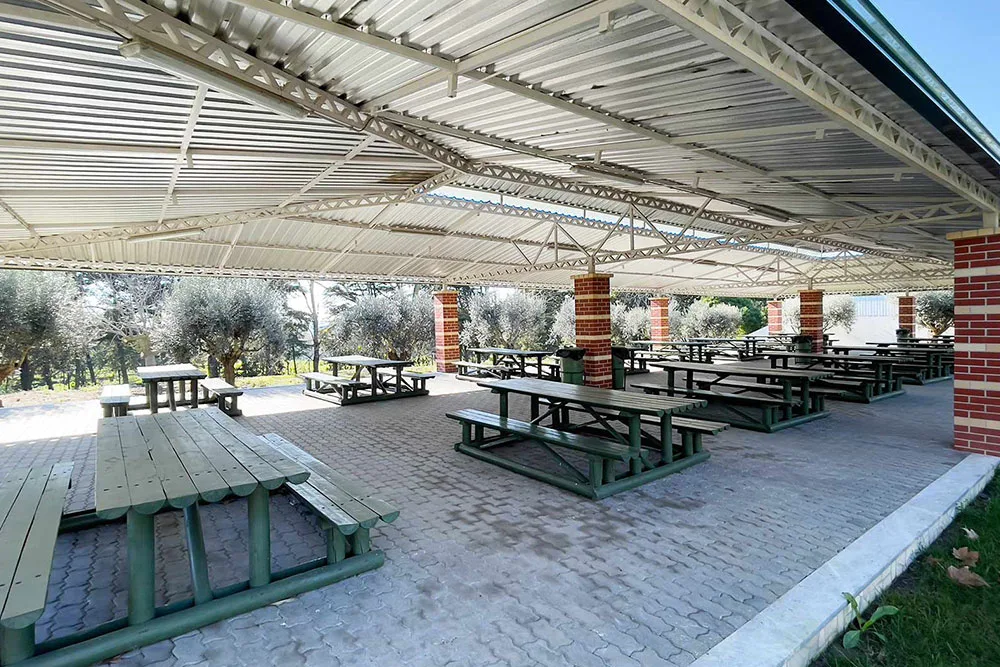 Do lado poente da esplanada do Santuário, encontram-se dois parques de merendas cobertos, com capacidade para 300 pessoas sentadas. Neste espaço, os peregrinos podem comer descansadamente o seu farnel.